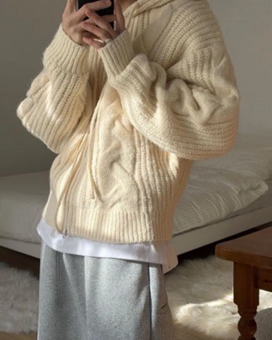 男裝 麻花針織外套 米白/灰色/深藍/黑色 👍麻花圖案明顯 👍材質不刺 混少量羊毛 簡單搭配素面內裡 發熱打底 或者是襯衫 素面襯衫/條紋襯衫 上班也很適合😻 誰穿誰好看 下身可以搭配運動褲/休閒褲產地:韓國設計 大陸工廠製作
