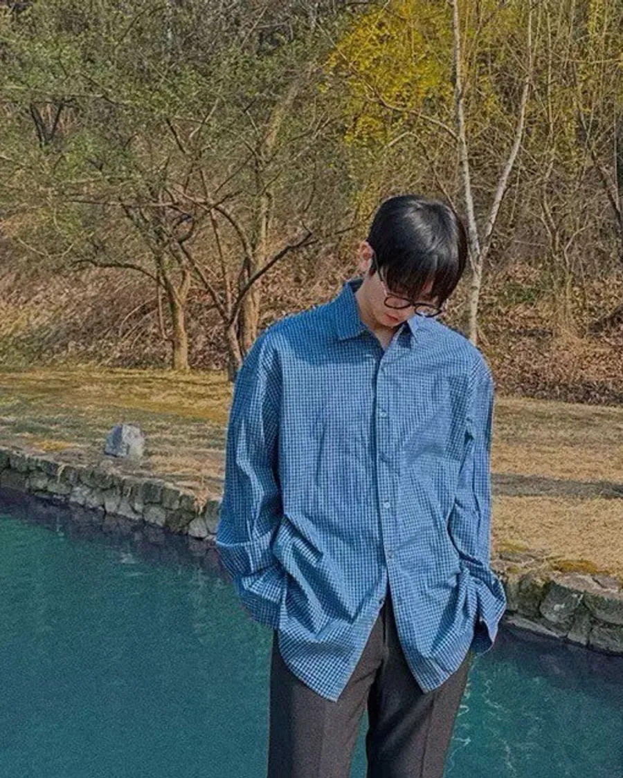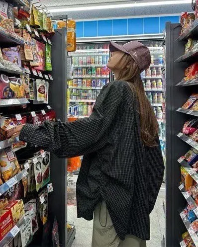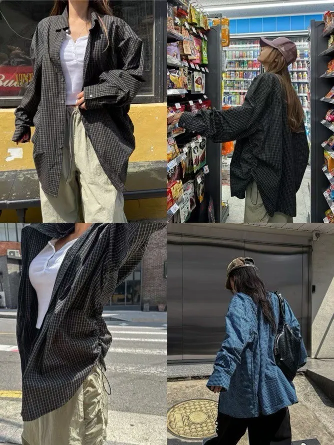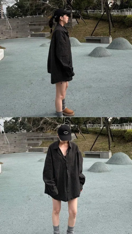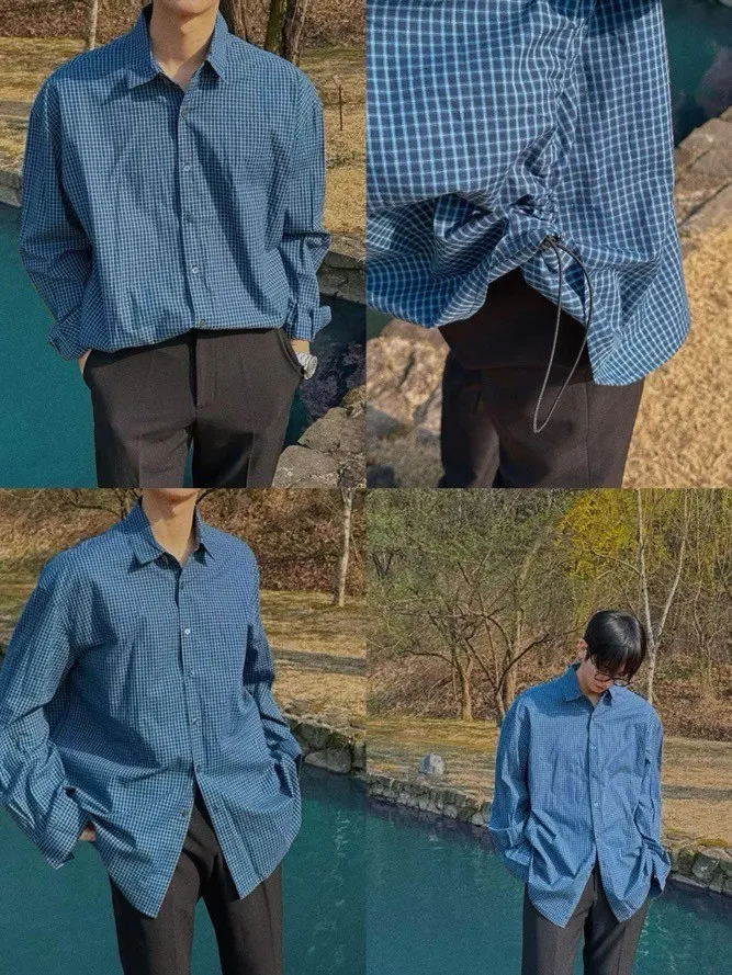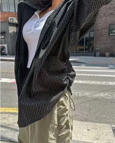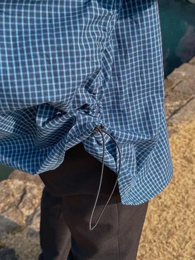 側抽繩格子襯衫